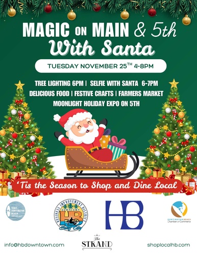 Join us for the Moonlight Business & Holiday Expo on 5th Street, a unique opportunity to showcase your business or organization during the holiday season. This special event coincides with Surf City Nights’ “Magic on Main” and offers excellent exposure to the local community in a lively, family-friendly setting.
